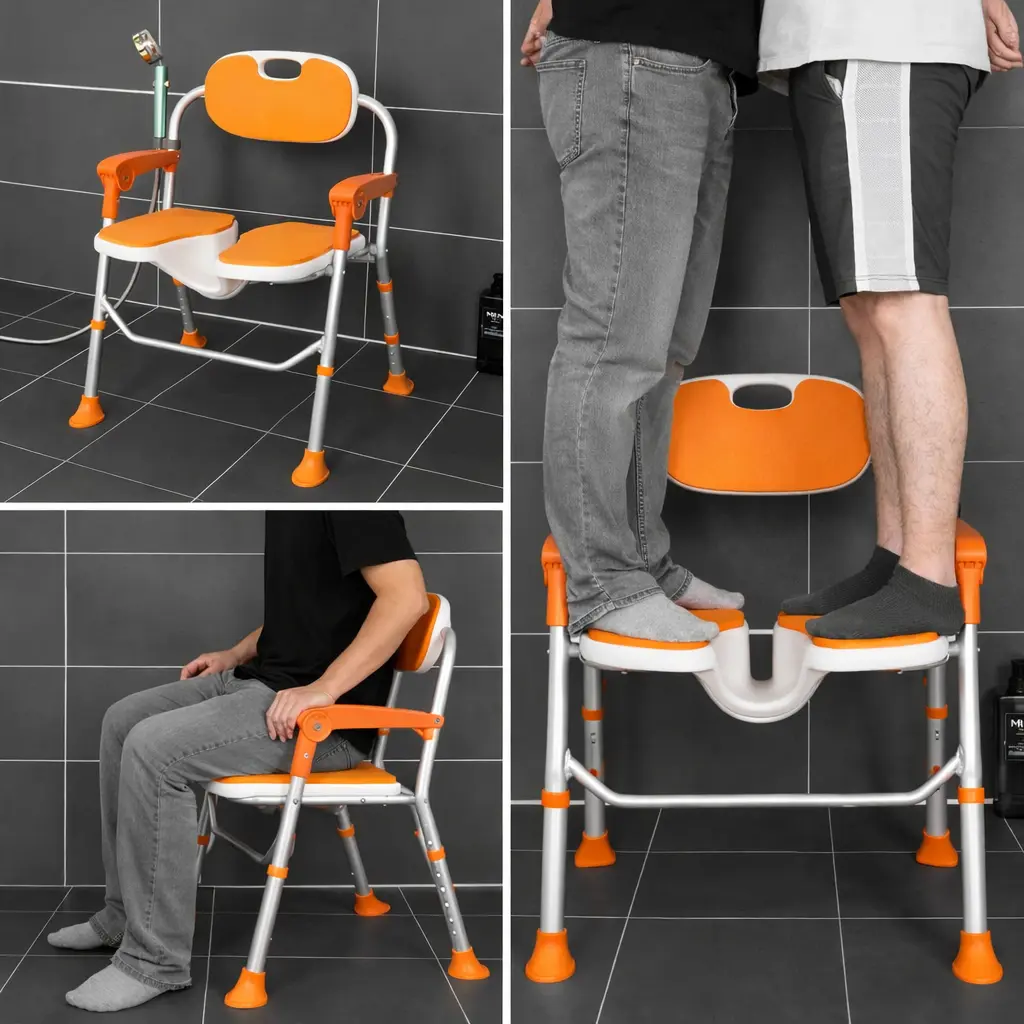 Scaunul de duș pliabil reglabil este un echipament ortopedic esențial pentru siguranța în baie, conceput pentru a oferi stabilitate, confort și independență în timpul igienei zilnice. Este ideal pentru persoane vârstnice, persoane cu mobilitate redusă, în recuperare post-operatorie sau femei însărcinate.