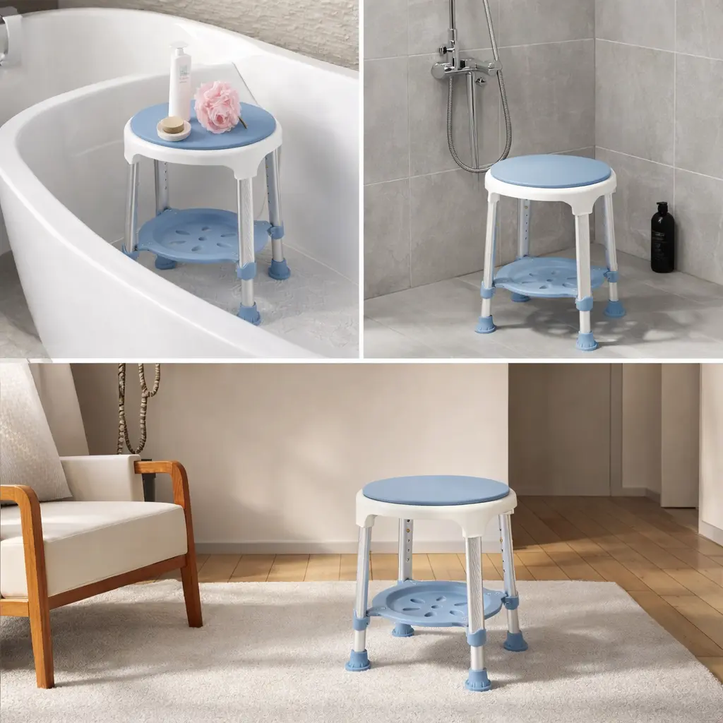 Scaun de Duș Rotativ 360° Reglabil pe Înălțime – Siguranță și Confort în Baie