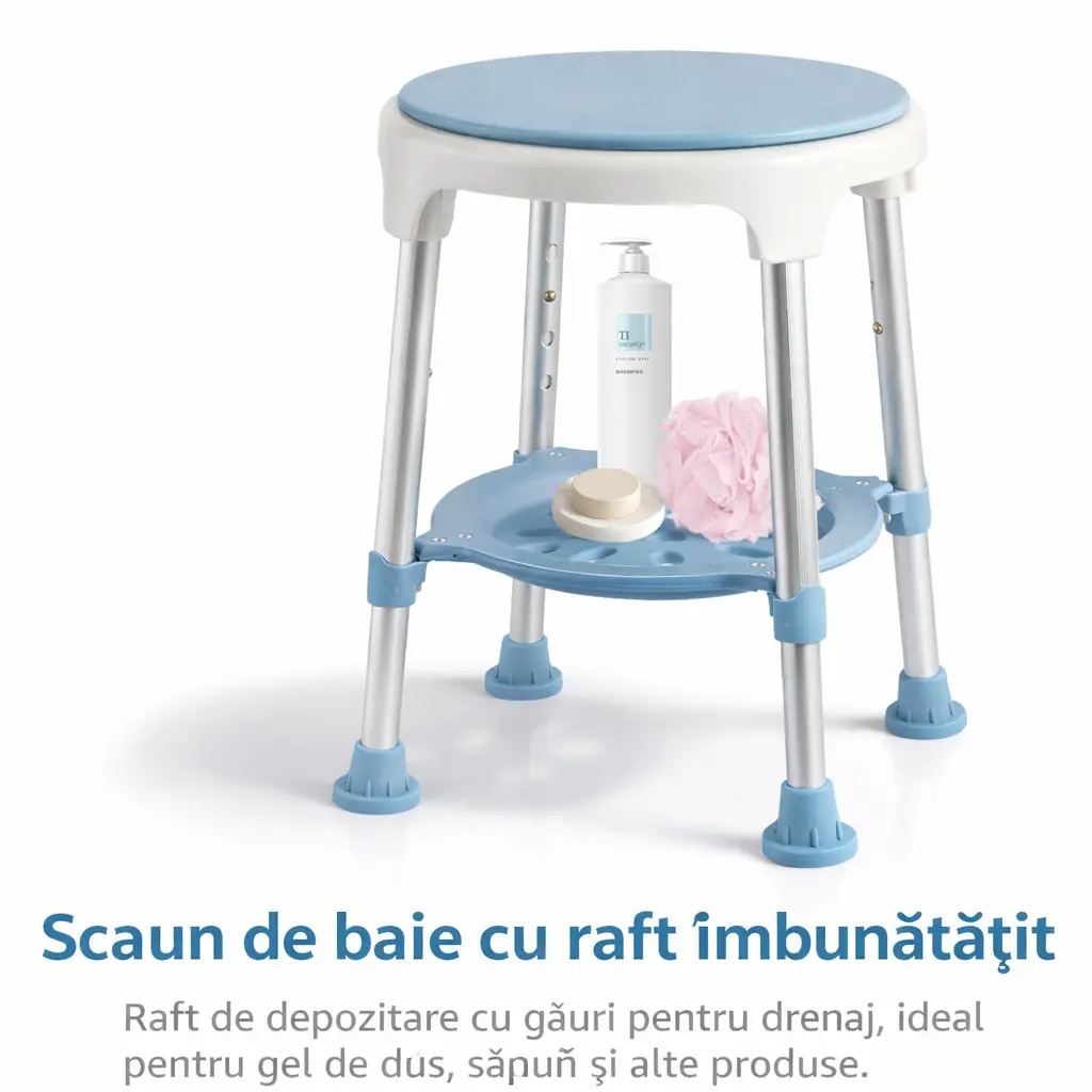 scaun de duș, taburet baie, scaun baie reglabil, scaun duș rotativ 360, scaun pentru vârstnici, scaun pentru persoane cu dizabilități, scaun anti-alunecare baie, taburet duș sigur, scaun baie aluminiu, scaun medical baie, scaun recuperare, echipament ortopedic baie, scaun duș compact, scaun baie stabil, scaun duș reglabil înălțime