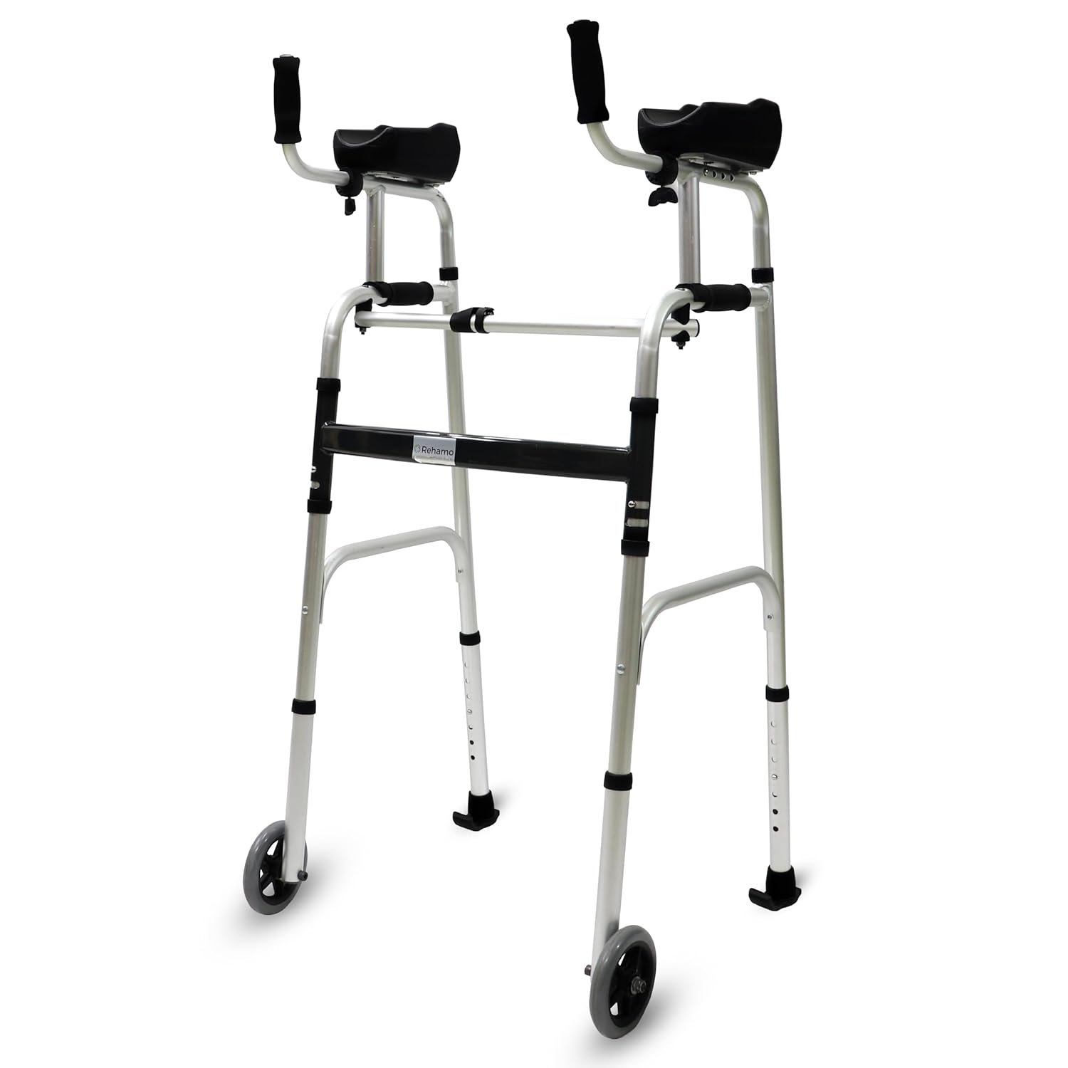 Acest cadru de mers cu sprijin în cot este conceput pentru a oferi stabilitate superioară și confort ergonomic persoanelor cu mobilitate redusă, seniorilor sau celor aflați în recuperare. Sprijinul pe antebraț permite distribuirea uniformă a greutății corpului, reducând presiunea asupra palmelor și încheieturilor și menținând o postură corectă în timpul deplasării.