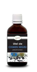 Specificații: Semințele de chimen negru conțin peste 100 de componente chimice diferite, inclusiv acizi grași esențiali, vitamine, minerale și carotenoizi. Uleiul esențial de chimen negru este obținut prin distilarea la aburi a semințelor, care conțin ulei vegetal în proporție de 35-40%, iar uleiurile volatile (esențiale) reprezintă 0.5 – 1.5%. Uleiul de chimen negru conține: acid oleic, acid palmitic, acid stearic, Omega 3 și 6, proteine, acid folic, vitaminele B1, B2, B3 și minerale precum calciu, cupru, fier, fosfor, zinc. Proprietăți terapeutice: analgezic, antibacterian, antioxidant, antifungic, antiseptic.