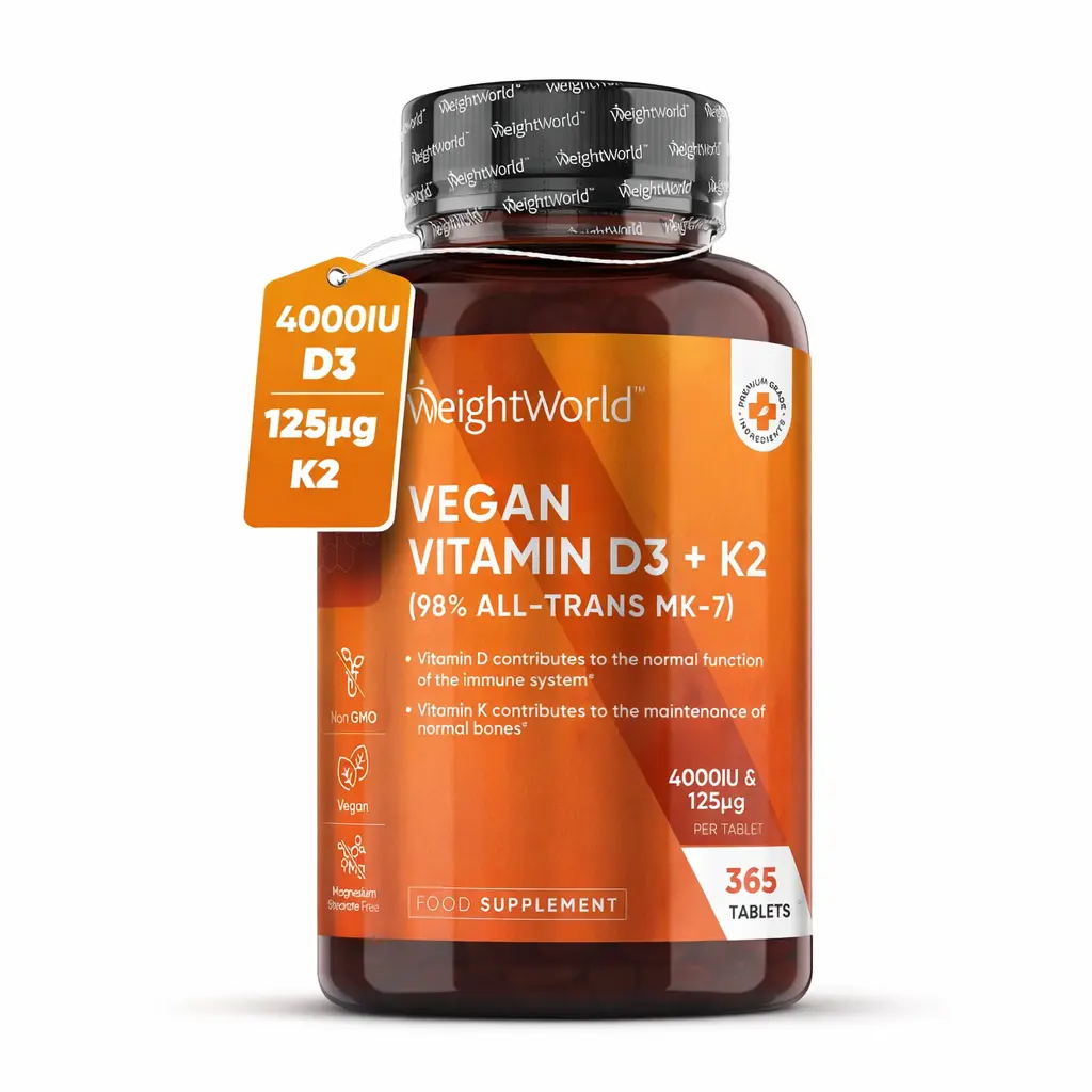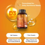 Vitamina D3 4000UI + K2 , 365 comprimate Susținere Esențială pentru Oase, Musculatură și Imunitate pentru 1 an intreg.